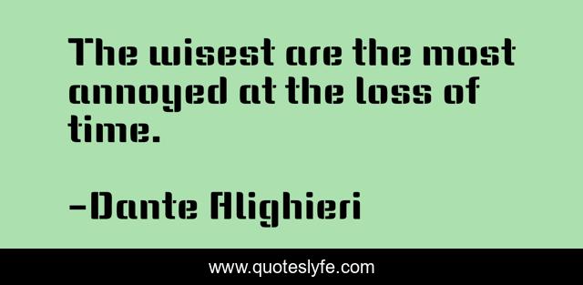 This page presents the quote "The wisest are the most annoyed at the loss of time.". Author of this quote is Dante Alighieri. This quote is about aging, time, impatience, wisdom,.