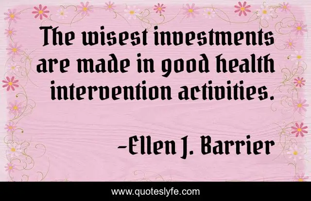 This page presents the quote "The wisest investments are made in good health intervention activities.". Author of this quote is Ellen J. Barrier. This quote is about activities, wise, invest, wisest, health, investments, intervention,.