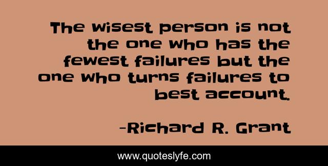 This page presents the quote "The wisest person is not the one who has the fewest failures but the one who turns failures to best account.". Author of this quote is Richard R. Grant. This quote is about failures, mistakes,.