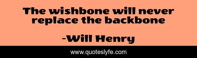 This page presents the quote "The wishbone will never replace the backbone". Author of this quote is Will Henry. This quote is about courage, determination, life-lessons,.