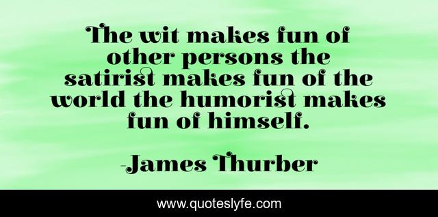 This page presents the quote "The wit makes fun of other persons the satirist makes fun of the world the humorist makes fun of himself.". Author of this quote is James Thurber. .