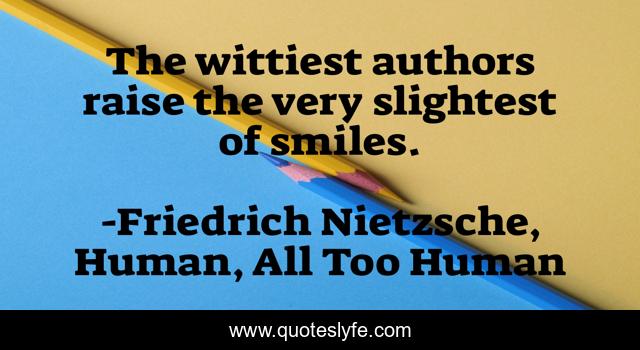 This page presents the quote "The wittiest authors raise the very slightest of smiles.". Author of this quote is Friedrich Nietzsche, Human, All Too Human. This quote is about witty, wit, humor,.