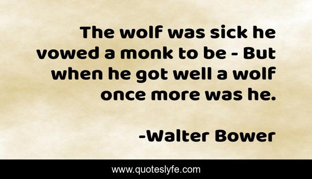 This page presents the quote "The wolf was sick he vowed a monk to be - But when he got well a wolf once more was he.". Author of this quote is Walter Bower. .