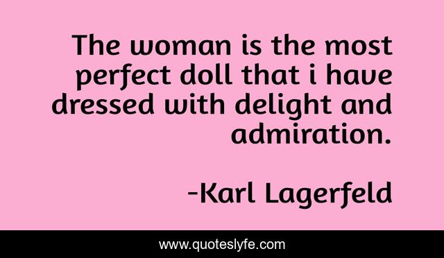 This page presents the quote "The woman is the most perfect doll that i have dressed with delight and admiration.". Author of this quote is Karl Lagerfeld. This quote is about fashion, doll, image, quotes, woman, design, clothing, perfect, style,.