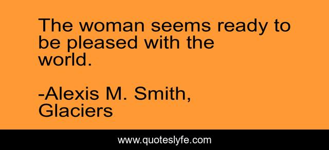 This page presents the quote "The woman seems ready to be pleased with the world.". Author of this quote is Alexis M. Smith, Glaciers. .