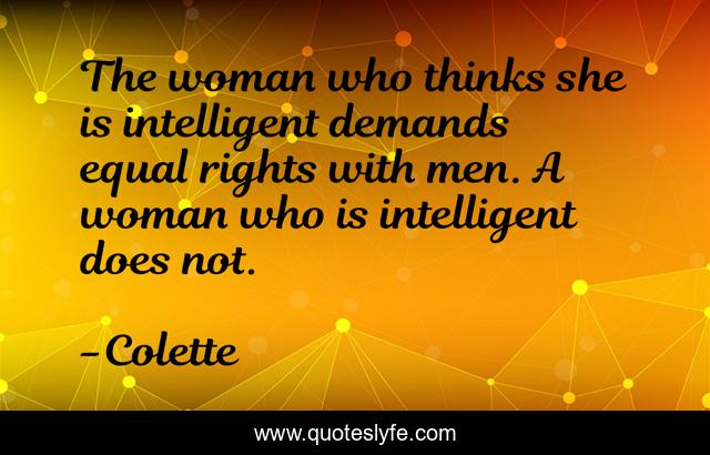 This page presents the quote "The woman who thinks she is intelligent demands equal rights with men. A woman who is intelligent does not.". Author of this quote is Colette. .