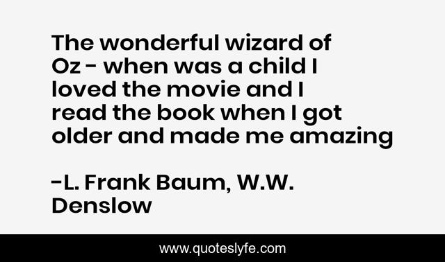 This page presents the quote "The wonderful wizard of Oz - when was a child I loved the movie and I read the book when I got older and made me amazing". Author of this quote is L. Frank Baum, W.W. Denslow. .