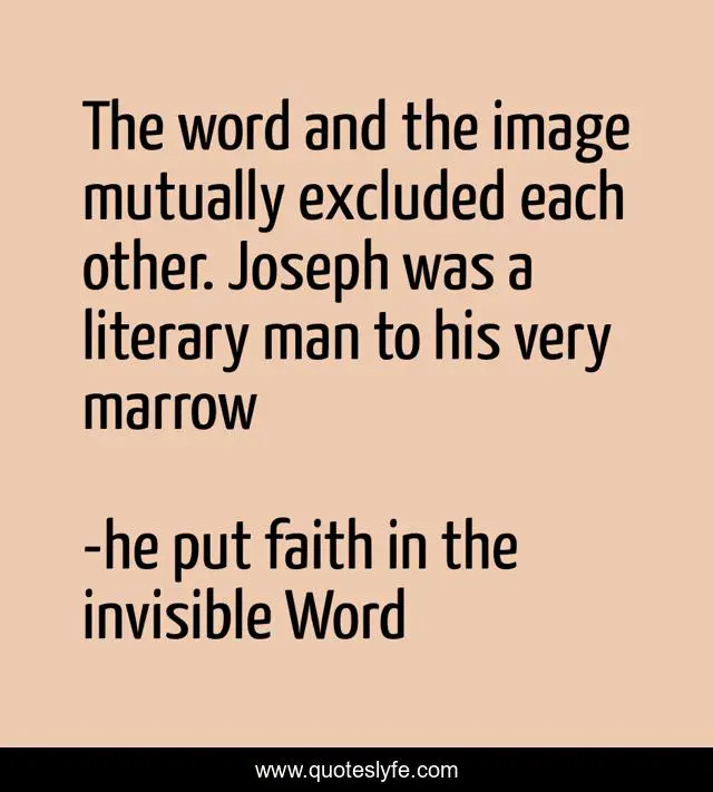 "he put faith in the invisible Word Quotes." Quoteslyfe.com, 2025. Fri. 05 Dec. 2025. <https://www.quoteslyfe.com/quote/The-word-and-the-image-mutually-excluded-197124>.