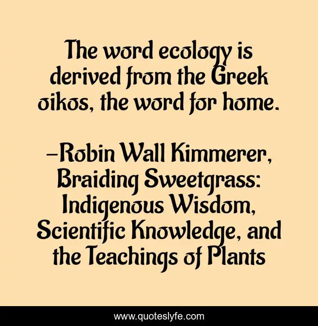 "Robin Wall Kimmerer, Braiding Sweetgrass: Indigenous Wisdom, Scientific Knowledge, and the Teachings of Plants Quotes." Quoteslyfe.com, 2025. Fri. 05 Dec. 2025. <https://www.quoteslyfe.com/quote/The-word-ecology-is-derived-from-the-112998>.