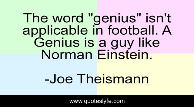 This page presents the quote "The word "genius" isn't applicable in football. A Genius is a guy like Norman Einstein.". Author of this quote is Joe Theismann. This quote is about funny, wow, stupid, comedy,.