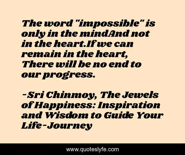 "Sri Chinmoy, The Jewels of Happiness: Inspiration and Wisdom to Guide Your Life-Journey Quotes." Quoteslyfe.com, 2025. Fri. 05 Dec. 2025. <https://www.quoteslyfe.com/quote/The-word-impossible-is-only-in-the-210161>.