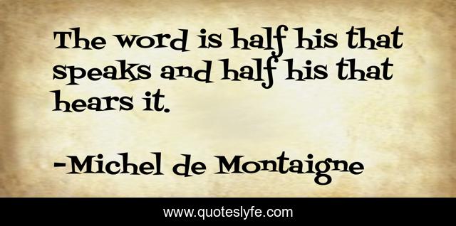 This page presents the quote "The word is half his that speaks and half his that hears it.". Author of this quote is Michel de Montaigne. This quote is about words, language,.
