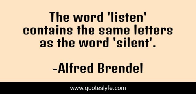 This page presents the quote "The word 'listen' contains the same letters as the word 'silent'.". Author of this quote is Alfred Brendel. This quote is about silent, inspirational, talking, listening, enthusiasm, listen,.