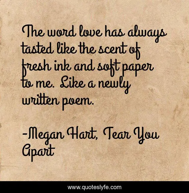 "Megan Hart, Tear You Apart Quotes." Quoteslyfe.com, 2025. Mon. 08 Dec. 2025. <https://www.quoteslyfe.com/quote/The-word-love-has-always-tasted-like-158108>.
