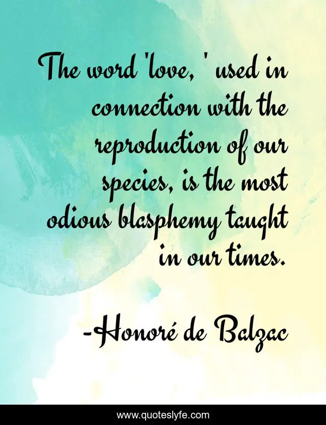 This page presents the quote "The word 'love, ' used in connection with the reproduction of our species, is the most odious blasphemy taught in our times.". Author of this quote is Honoré de Balzac. This quote is about selfishness, love, reproduction, affection,.