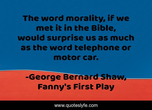 This page presents the quote "The word morality, if we met it in the Bible, would surprise us as much as the word telephone or motor car.". Author of this quote is George Bernard Shaw, Fanny's First Play. This quote is about bible, morality,.