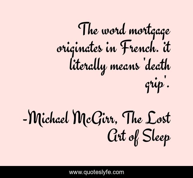 "Michael McGirr, The Lost Art of Sleep Quotes." Quoteslyfe.com, 2025. Mon. 08 Dec. 2025. <https://www.quoteslyfe.com/quote/The-word-mortgage-originates-in-French-it-56099>.
