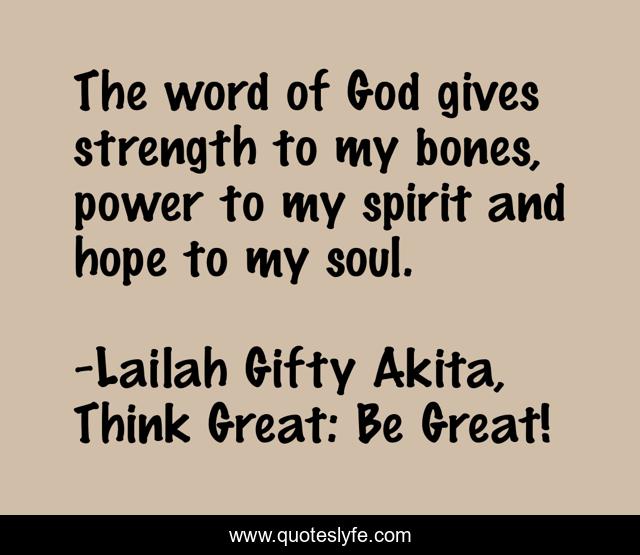 "Lailah Gifty Akita, Think Great: Be Great! Quotes." Quoteslyfe.com, 2025. Fri. 05 Dec. 2025. <https://www.quoteslyfe.com/quote/The-word-of-God-gives-strength-to-172889>.