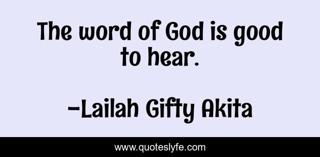 This page presents the quote "The word of God is good to hear.". Author of this quote is Lailah Gifty Akita. This quote is about bible-study-scriptures, christian, faith, word-of-god, gospel, hope,.