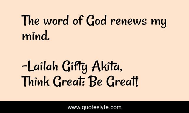 "Lailah Gifty Akita, Think Great: Be Great! Quotes." Quoteslyfe.com, 2025. Tue. 09 Dec. 2025. <https://www.quoteslyfe.com/quote/The-word-of-God-renews-my-mind-62547>.