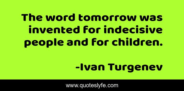 This page presents the quote "The word tomorrow was invented for indecisive people and for children.". Author of this quote is Ivan Turgenev. This quote is about people, tomorrow, children,.
