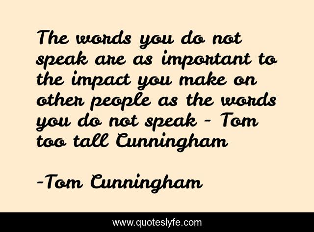 The words you do not speak are as important to the impact you make on other people as the words you do not speak - Tom too tall Cunningham