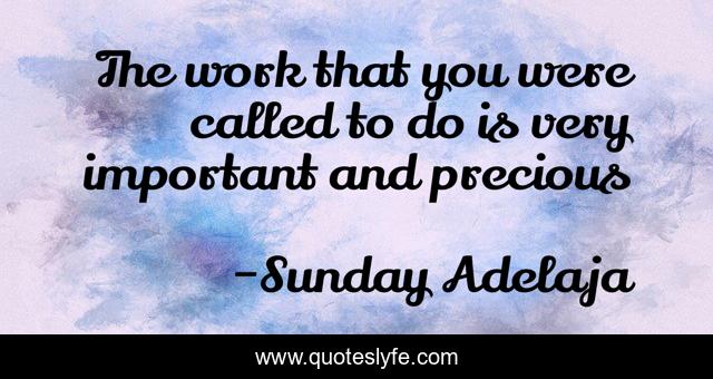 This page presents the quote "The work that you were called to do is very important and precious". Author of this quote is Sunday Adelaja. This quote is about precious, work, calling, purpose, fulfillment,.