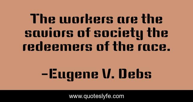 This page presents the quote "The workers are the saviors of society the redeemers of the race.". Author of this quote is Eugene V. Debs. .