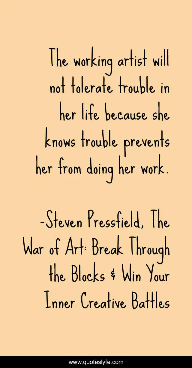 "Steven Pressfield, The War of Art: Break Through the Blocks & Win Your Inner Creative Battles Quotes." Quoteslyfe.com, 2025. Sat. 06 Dec. 2025. <https://www.quoteslyfe.com/quote/The-working-artist-will-not-tolerate-trouble-204767>.