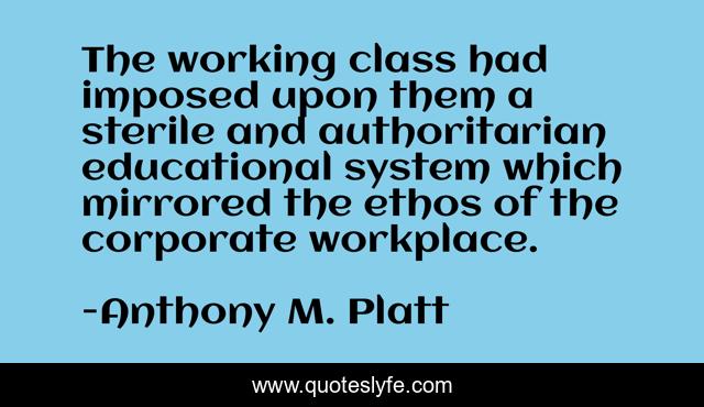 This page presents the quote "The working class had imposed upon them a sterile and authoritarian educational system which mirrored the ethos of the corporate workplace.". Author of this quote is Anthony M. Platt. This quote is about politics, economics, education,.