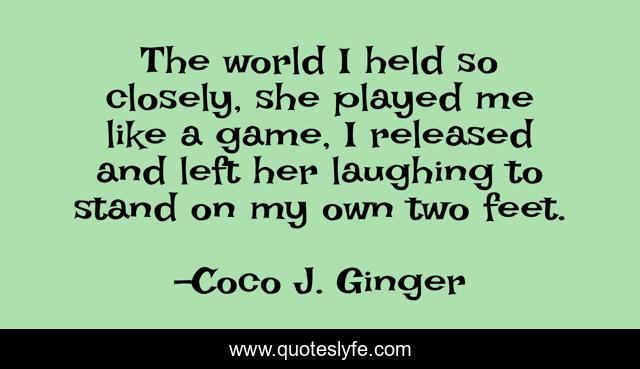 This page presents the quote "The world I held so closely, she played me like a game, I released and left her laughing to stand on my own two feet.". Author of this quote is Coco J. Ginger. This quote is about freedom, game, jamie-weise, world, liberation,.