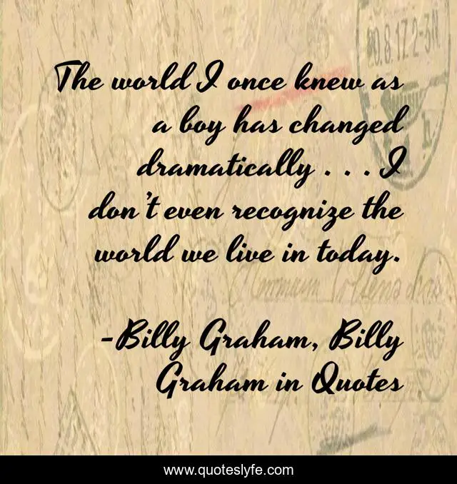 "Billy Graham, Billy Graham in Quotes Quotes." Quoteslyfe.com, 2025. Fri. 05 Dec. 2025. <https://www.quoteslyfe.com/quote/The-world-I-once-knew-as-a-152058>.