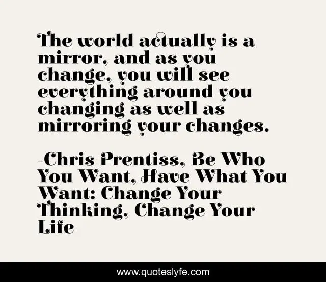 "Chris Prentiss, Be Who You Want, Have What You Want: Change Your Thinking, Change Your Life Quotes." Quoteslyfe.com, 2025. Sun. 07 Dec. 2025. <https://www.quoteslyfe.com/quote/The-world-actually-is-a-mirror-and-106554>.