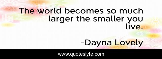 This page presents the quote "The world becomes so much larger the smaller you live.". Author of this quote is Dayna Lovely. This quote is about simplicity, life, inspirational, simplicity-happiness-joy, enthusiasm,.