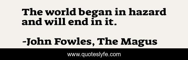 This page presents the quote "The world began in hazard and will end in it.". Author of this quote is John Fowles, The Magus. .