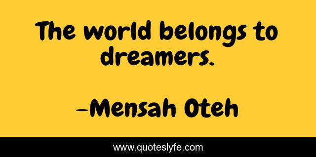 "Mensah Oteh Quotes." Quoteslyfe.com, 2025. Sat. 06 Dec. 2025. <https://www.quoteslyfe.com/quote/The-world-belongs-to-dreamers-49109>.