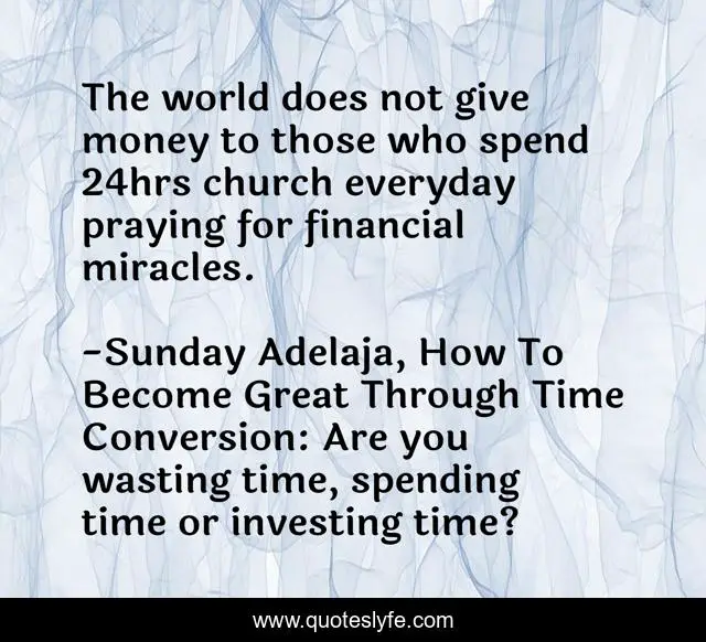 "Sunday Adelaja, How To Become Great Through Time Conversion: Are you wasting time, spending time or investing time? Quotes." Quoteslyfe.com, 2025. Fri. 05 Dec. 2025. <https://www.quoteslyfe.com/quote/The-world-does-not-give-money-to-38950>.