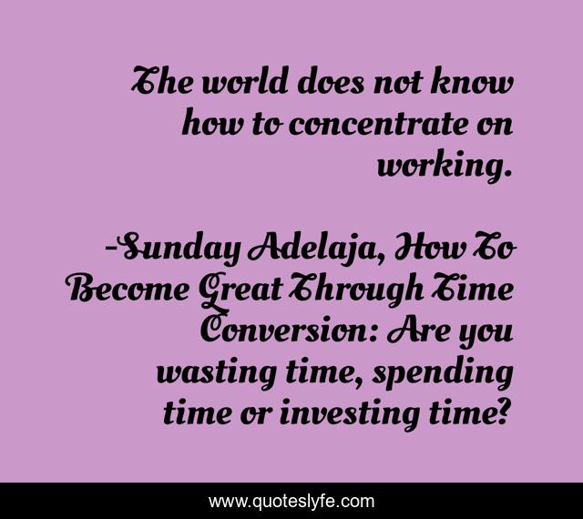 This page presents the quote "The world does not know how to concentrate on working.". Author of this quote is Sunday Adelaja, How To Become Great Through Time Conversion: Are you wasting time, spending time or investing time?. This quote is about convert, productivity, wealth, gift, great, work, life, value, calling,.