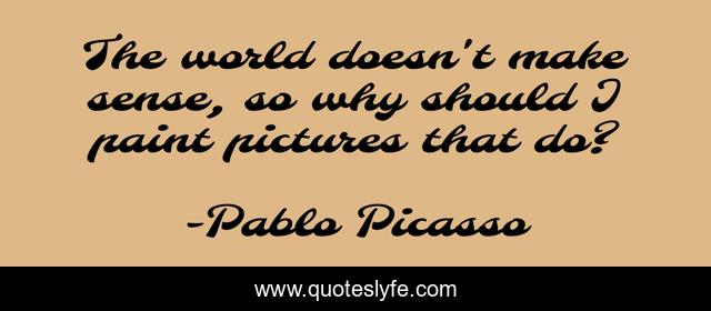 This page presents the quote "The world doesn't make sense, so why should I paint pictures that do?". Author of this quote is Pablo Picasso. This quote is about world, art,.