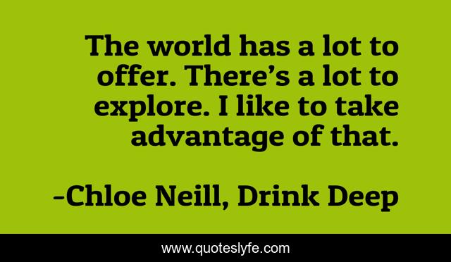 This page presents the quote "The world has a lot to offer. There’s a lot to explore. I like to take advantage of that.". Author of this quote is Chloe Neill, Drink Deep. This quote is about neill, drink, chloe, deep, jonah,.