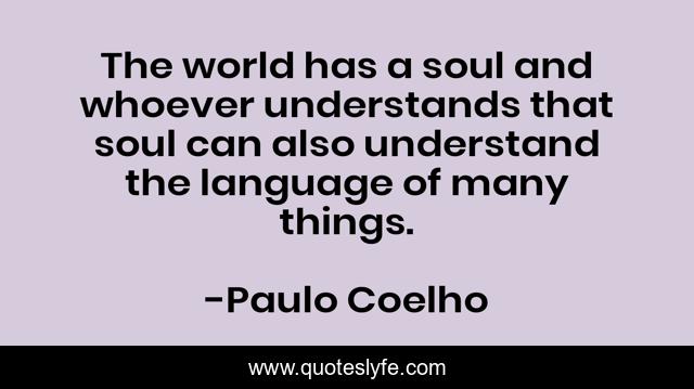 This page presents the quote "The world has a soul and whoever understands that soul can also understand the language of many things.". Author of this quote is Paulo Coelho. .