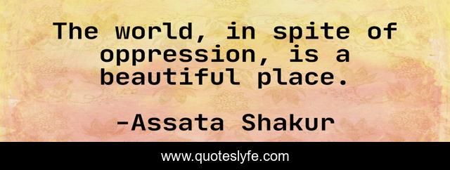 This page presents the quote "The world, in spite of oppression, is a beautiful place.". Author of this quote is Assata Shakur. This quote is about oppression, beauty,.