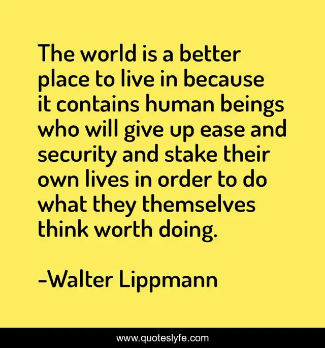 "Walter Lippmann Quotes." Quoteslyfe.com, 2025. Sat. 06 Dec. 2025. <https://www.quoteslyfe.com/quote/The-world-is-a-better-place-to-91483>.