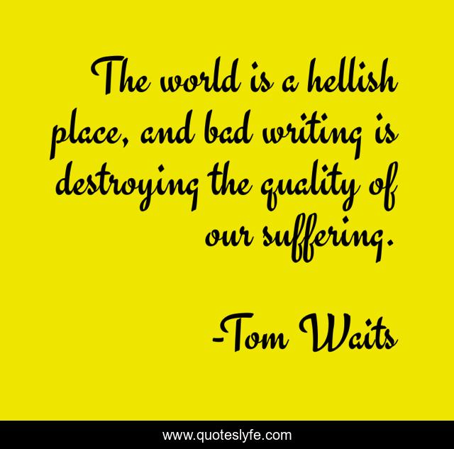 This page presents the quote "The world is a hellish place, and bad writing is destroying the quality of our suffering.". Author of this quote is Tom Waits. This quote is about books, literature, writing,.