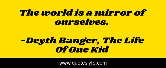 This page presents the quote "The world is a mirror of ourselves.". Author of this quote is Deyth Banger, The Life Of One Kid. This quote is about world, ourselves, mirror,.
