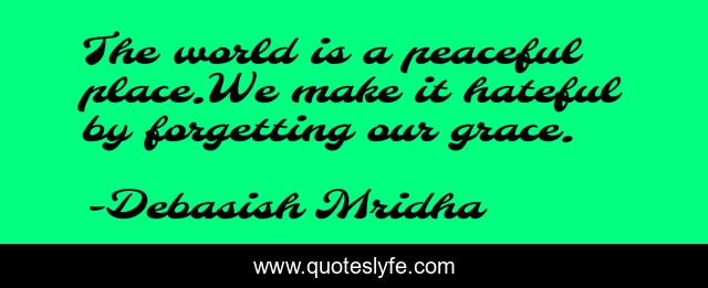 This page presents the quote "The world is a peaceful place.We make it hateful by forgetting our grace.". Author of this quote is Debasish Mridha. This quote is about life, love, knowledge, inspirational, intelligence, philosophy, wisdom, quotes, affection,.