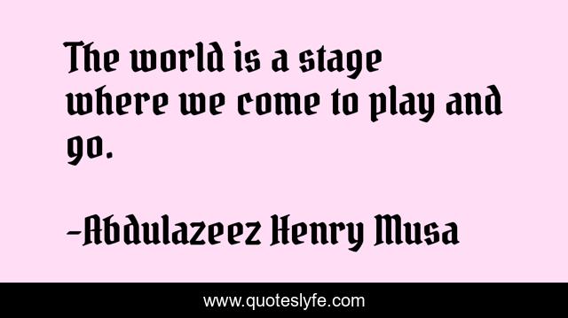 This page presents the quote "The world is a stage where we come to play and go.". Author of this quote is Abdulazeez Henry Musa. .