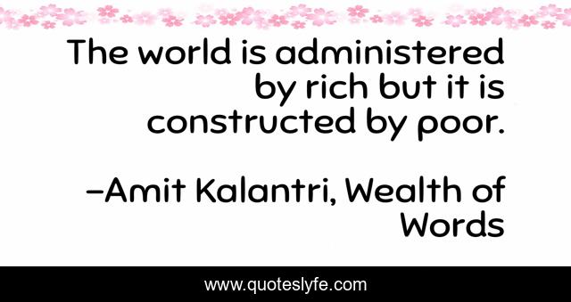 "Amit Kalantri, Wealth of Words Quotes." Quoteslyfe.com, 2025. Mon. 08 Dec. 2025. <https://www.quoteslyfe.com/quote/The-world-is-administered-by-rich-but-23861>.