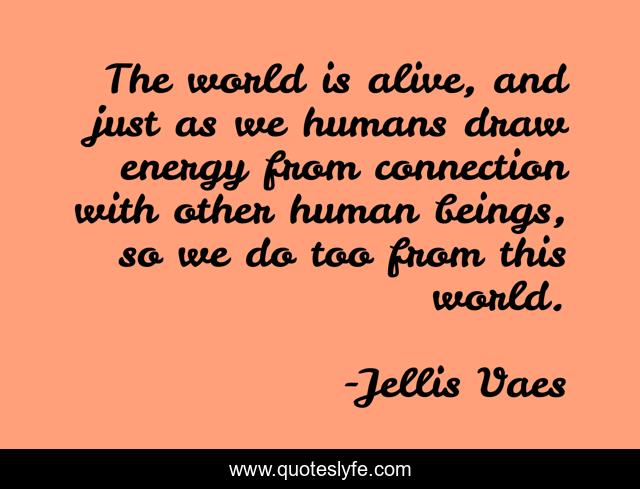 This page presents the quote "The world is alive, and just as we humans draw energy from connection with other human beings, so we do too from this world.". Author of this quote is Jellis Vaes. This quote is about jellis-vaes, travel, wisdom,.