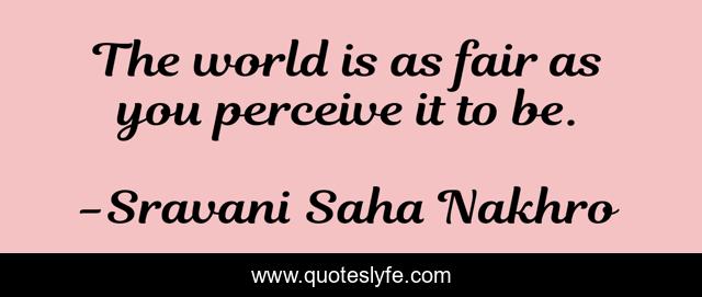 This page presents the quote "The world is as fair as you perceive it to be.". Author of this quote is Sravani Saha Nakhro. .